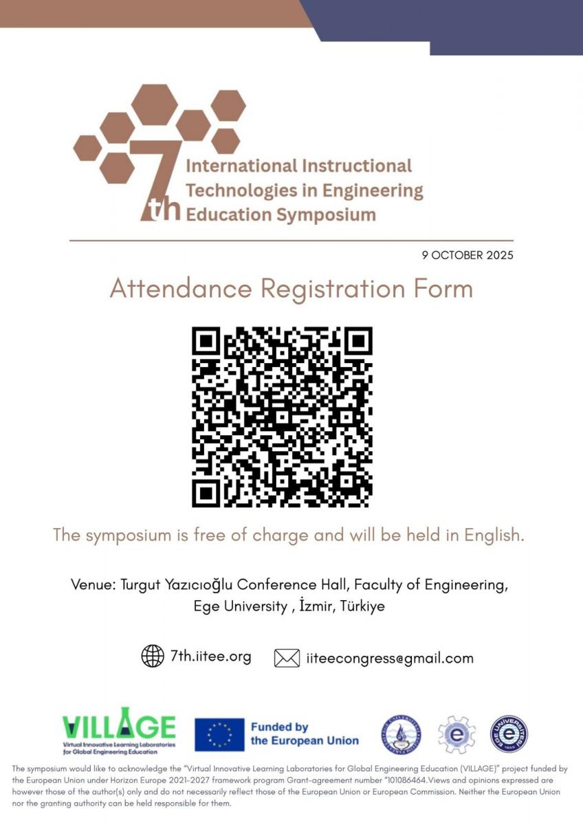 × Duyuru Görüntüleme SEMPOZYUM 7’TH INTERNATIONAL INSTRUCTIONAL TECHNOLOGIES IN ENGINEERING EDUCATION SYMPOSIUM TARİH / SAAT : 09 Ekim 2025 / 10.00 YER : Çevrimiçi / https://forms.gle/z7vYjDxUk8sAG3Lb7 DÜZENLEYEN : EÜ Mühendislik Fakültesi GOOGLE TAKVİME EKLE ( Google Takvim Kullananlar için)