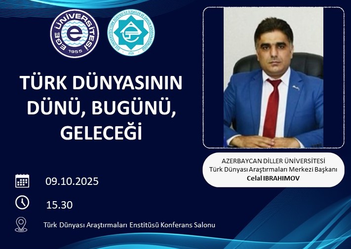 × Duyuru Görüntüleme SEMİNER TÜRK DÜNYASININ DÜNÜ, BUGÜNÜ VE GELECEĞİ TARİH / SAAT : 09 Ekim 2025 / 15.30 YER : EÜ Türk Dünyası Araştırmaları Enstitüsü Konferans Salonu DÜZENLEYEN : EÜ Türk Dünyası ile İlişkiler ve Orhun Koordinatörlüğü GOOGLE TAKVİME EKLE ( Google Takvim Kullananlar için)