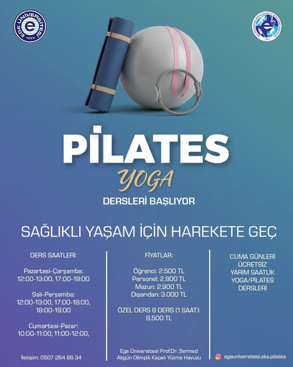Ege Üniversitesi Yüzme Havuzu içerisinde bulunan Pilates Salonumuzun ders programında aşağıdaki güncellemeler yapılmıştır: